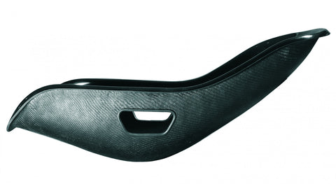 The W3 seat is a reclined seat with a formula race car driving position. This is black GRP version with a backframe and the edges on, which weighs 3.6 kg and is 43 cm wide. Seat belt harness holes are included. A five or six point harness is advised with any reclined seat. The floor mountable backframe has four M8 bolts integrated into the moulding. With the backframe the seat is self-supporting and easy to mount rigidly to the floor or on top of the Tillett TR1 seat adjustment runners.