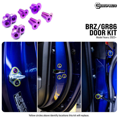 Our 14 piece door kit includes bolts manufactured from extremely durable, anticorrosive, and lightweight GR5 titanium metal. The kit is designed for the 2022+ BRZ and GR86.