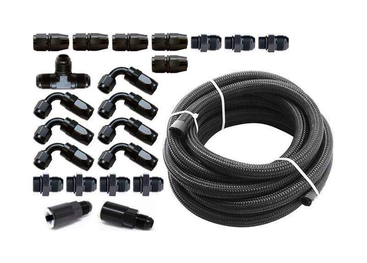 Torque Solution Braided Fuel Line Kit for -6 Aeromotive Fuel Pressure Regulator is a perfect complement to go along with our Top Feed Fuel Rails. This kit utilizes the OEM hard lines on your Subaru and is supplied with our -6 AN quick connect fittings for a clean plug and play install. This setup is perfect for anyone looking to make up to 600 whp (proper fuel pump setup required). Our kit is designed to allow you to setup your fuel system in parallel to ensure each cylinder receives optimal fueling. All our fittings come black anodized and are compatible with all fuel types such as E85. Works with the Torque Solution Top Feed Fuel Rails or any other fuel rail that accepts -8an ORB fittings.
