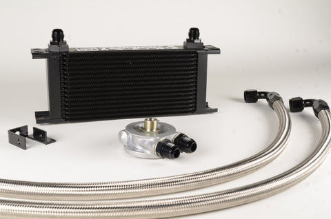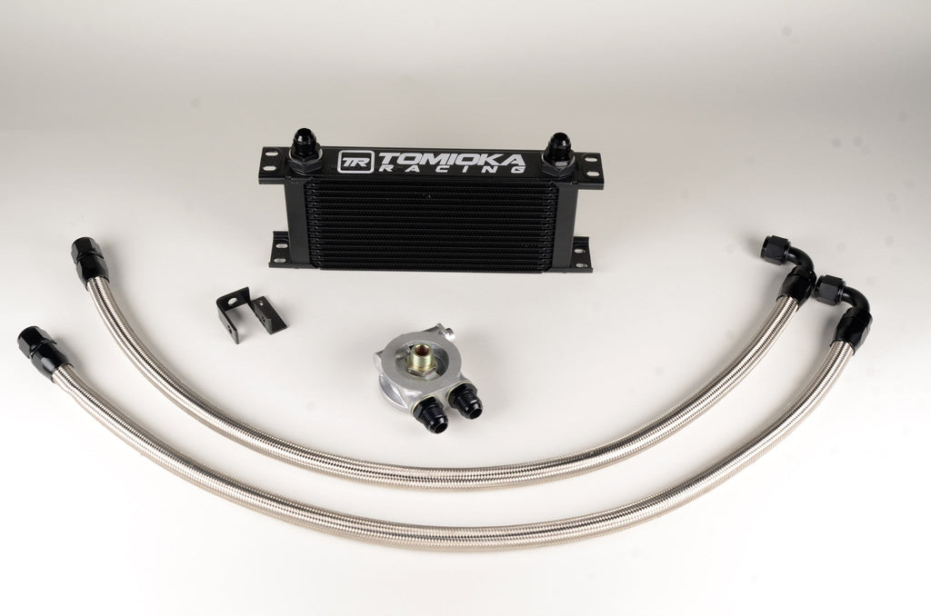 TR oil cooler features 16 row cooler core with high quality stainless steel braided lines and fittings. TR oil cooler is the perfect upgrade for street or track car. Oil cooler kit prolongs the life of the engine oil and internal components especially for subarus under harsh driving conditions. The oil cooler also increases the overall engine oil capacity to make sure plenty of lubrication for the boxer engine. TR oil cooler comes assembled and includes all hardware with brackets for bolt-on installation. This kit comes in ready with built-in themostat oil-sandwich adapter, perfect for winter driving, to make sure the oil is not over cooled. Thermostat opens at 180F to ensure proper warm up. We have seen up to 30 degrees Fahrenheit of oil temperature improvement over stock during aggressive driving conditions!*