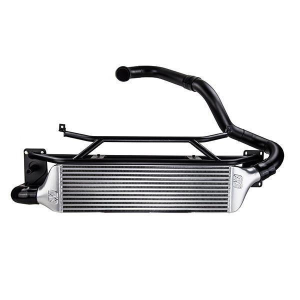 The TurboXS 2015+ Subaru WRX FMIC Kit might be the single best modification you can do to your 2015+ WRX. One of the biggest keys to making consistent power in a 2015+ WRX is managing the intake manifold temperature. This is an issue when the WRX is bone stock and becomes an even bigger issue when you start to modify it. The stock top mount intercooler simply isn¡¯t up to the task. After just a few minutes of hard driving, the small, overworked TMIC quickly becomes heat soaked. Intake manifold temperatures rise quickly and power output drops off even more quickly. The power drop is not just due to the hotter, less dense air coming out of the intercooler but also because the WRX ECU logic will actually start to reduce ignition timing as intake manifold temperatures climb. Reduced ignition time directly reduced power output. You could replace the stock TMIC with an well-designed aftermarket TMIC. While they are certainly much better than the stock TMIC, our testing shows that even they can only delay the inevitable intake manifold temperature increase that comes from having a small intercooler core sitting inside a hot engine bay.