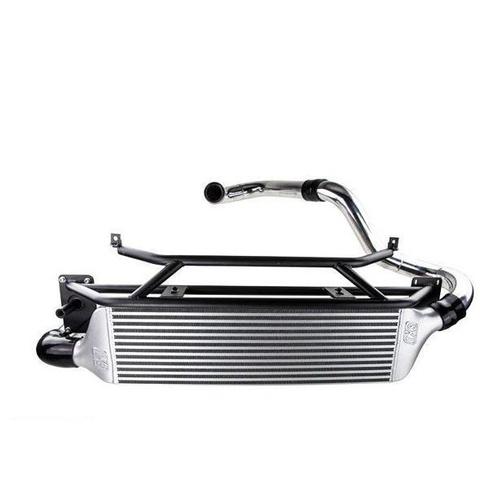 The TurboXS 2015+ Subaru WRX FMIC Kit might be the single best modification you can do to your 2015+ WRX. One of the biggest keys to making consistent power in a 2015+ WRX is managing the intake manifold temperature. This is an issue when the WRX is bone stock and becomes an even bigger issue when you start to modify it. The stock top mount intercooler simply isn¡¯t up to the task. After just a few minutes of hard driving, the small, overworked TMIC quickly becomes heat soaked. Intake manifold temperatures rise quickly and power output drops off even more quickly. The power drop is not just due to the hotter, less dense air coming out of the intercooler but also because the WRX ECU logic will actually start to reduce ignition timing as intake manifold temperatures climb. Reduced ignition time directly reduced power output. You could replace the stock TMIC with an well-designed aftermarket TMIC. While they are certainly much better than the stock TMIC, our testing shows that even they can only delay the inevitable intake manifold temperature increase that comes from having a small intercooler core sitting inside a hot engine bay.