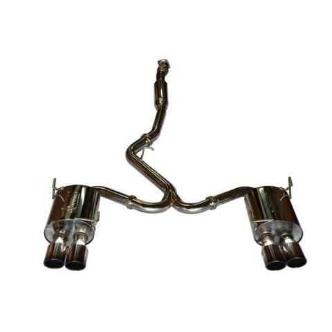 The rest of the exhaust system consists of a 3 inch in to dual 2.5 inch out Y-Pipe with free flowing mandrel bends that are aesthetically pleasing and also disperse exhaust gases efficiently. The design keeps excellent clearance to any moving parts including larger aftermarket sway bars and sway bar braces. A 3 inch midpipe with flex section and resonator complete the system and connect to your stock or aftermarket downpipe. Like all TurboXS exhausts, all piping, flanges, and mufflers are made from T304 stainless steel, TIG welded with precision, and all have a show quality finish.
