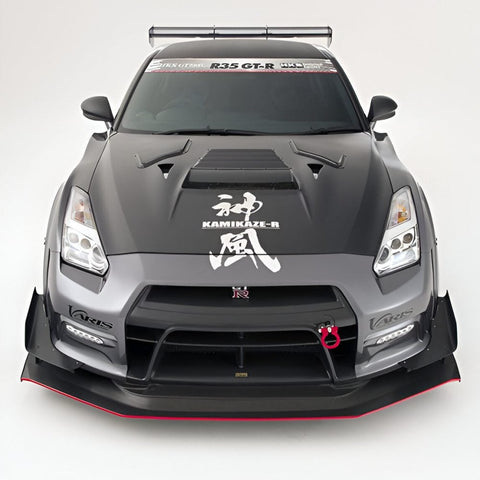 Introducing the Varis KAMIKAZE-R “Super Sonic” Ver.2 Cooling Bonnet Hood for the R35 Nissan GT-R, a top-tier upgrade designed to maximize performance. This bonnet is available in either lightweight carbon fiber or Varis Semi-Dry Carbon (VSDC), each option ensuring minimal weight with maximum strength. It features functional NACA ducts specifically engineered to enhance the cooling of turbos, significantly improving efficiency and performance. Additionally, the design of this cooling bonnet promotes enhanced aerodynamics and ventilation, optimizing airflow over and through the bonnet to keep engine temperatures at optimal levels during high-performance driving. This hood is a perfect blend of form and function, making it an essential upgrade for the performance-focused GT-R owner.