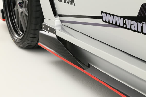 Includes side air shrouds, available in either FRP or carbon fiber (main side skirt body is FRP).