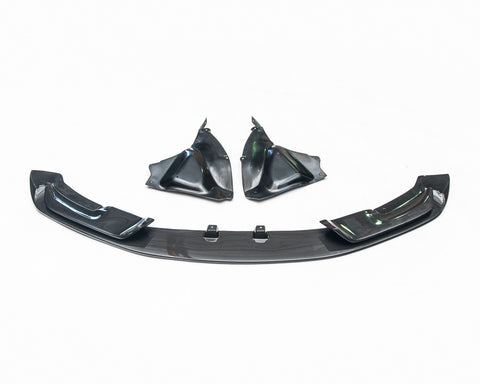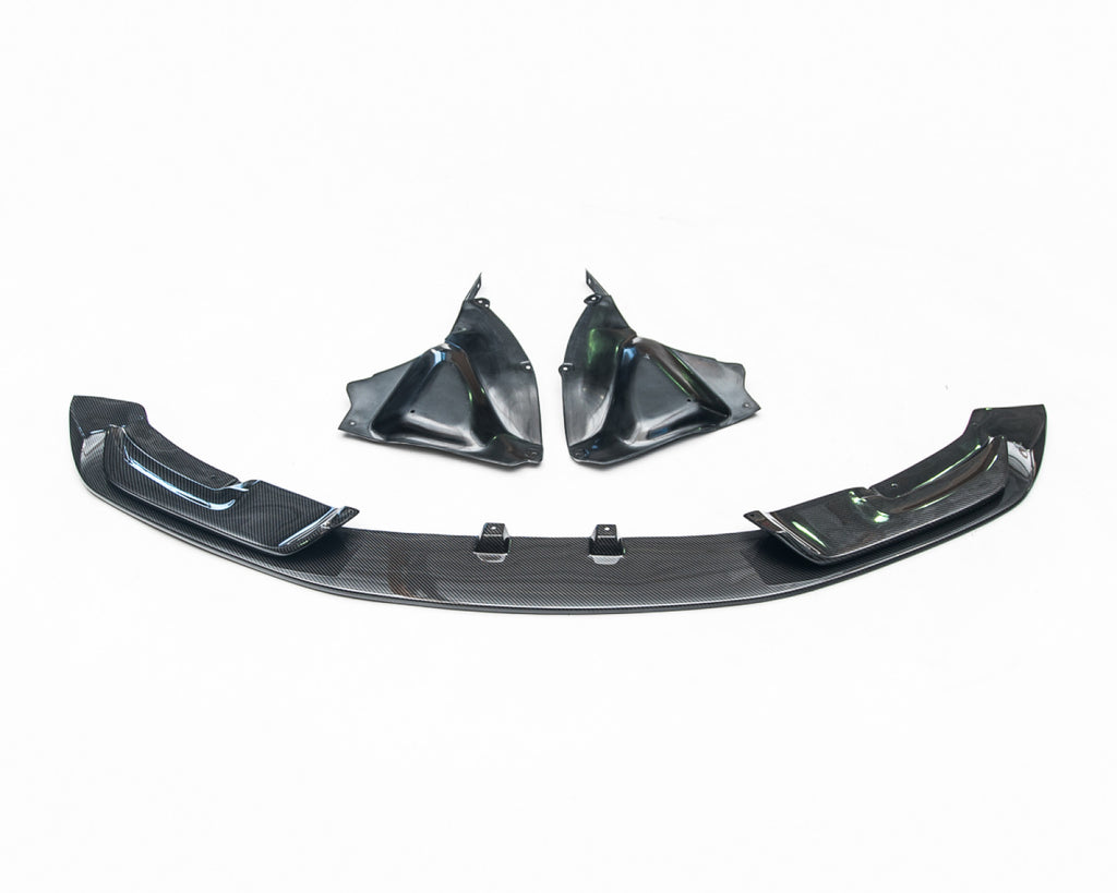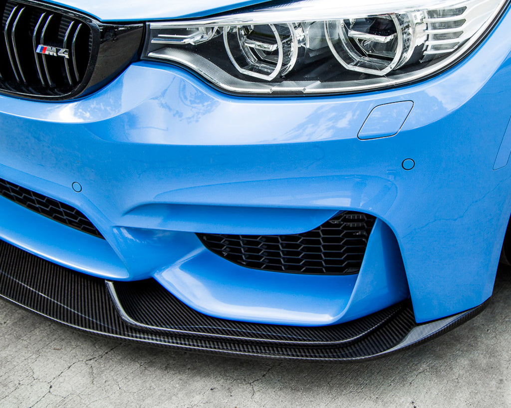VR Aero has enhanced the BMW F8X M3 & M4 chassis with their all new 3-piece carbon fiber front lip spoiler. The front lip is designed to increase the aerodynamic properties of the front of the F80 M3 or F82 M4, all while providing a much more aggressive look. Vivid Racing's front lip for the BMW is constructed from high quality 2x2 carbon fiber weave and is finished in a high gloss finish to protect against UV, while giving a beautiful wet looking finish. This product has been designed as a complete OEM replacement and attaches directly to the OEM hardware in place of the factory part.