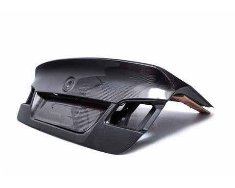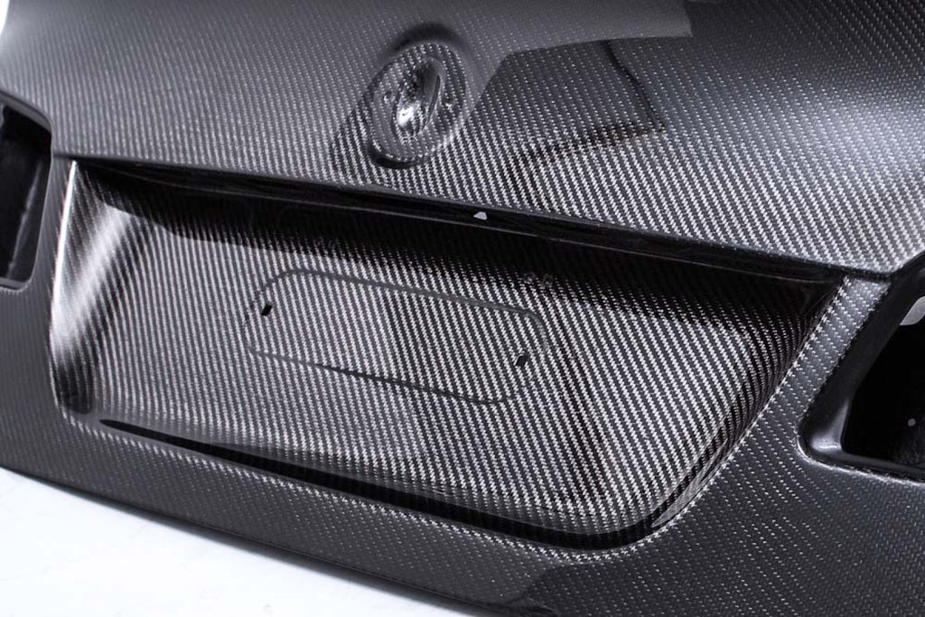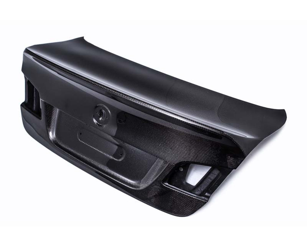 Vivid Racing has partnered with a leading composite manufacture to offer this exquisite, super high quality carbon fiber CSL style trunk. Its lines and fitment are far superior to OEM quality. The underside utilizes all OEM hardware, trim, and locking mechanisms. Its black FRP bottom is very strong and durable while the high gloss carbon fiber 2x2 weave top is of stunning show quality. The carbon fiber trunk can be fitted to your vehicle in raw form or painted to color match your vehicle. Its BMW CSL inspired duct tail spoiler is integrated into the design of the trunk for one smooth flowing design. The aerodynamic styling and lightweight build quality is a perfect accessory for any BMW F10 M5 or its smaller siblings, the 528, 535, 550 series sedans.