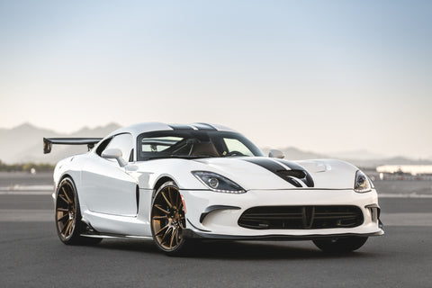 VR Aero has added to its aero kit program with this carbon fiber front lip spoiler for the SRT Viper. Its hard to make the Viper more impressive but these new pieces for the 2013+ SRT Viper (formerly Dodge Viper) help add to the car s aerodynamics. Debuting at the 2013 SEMA show, Vivid Racing has released this carbon fiber front lip spoiler was designed to give a the Viper a bit more styling to the factory bumper. Following the sexy curves of the SRT Viper, the front lip features small side wings at either end. The 2x2 carbon weave is shown off beautifully with a UV glossy clear coat. The lip fits easily to the stock bumper and mates to it as if it came with the car already.