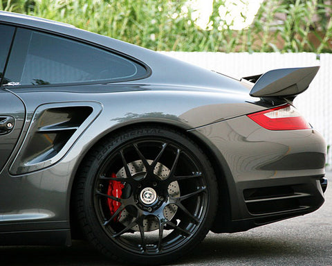 The Porsche 997 Turbo is an incredible machine that can reach unbelievable top speeds in its stock form. Taking this car to the track however requires some increased downforce. Downforce helps the car in traction by keeping the rear end planted on the ground. Modeled after the GT2 rear wing blade, VR Aero has released this add on wing to work with the stock decklid. Not only functional, this rear wing also adds style! The wing blade ends extend out and turn down to knife through the air. The wing blade follows the rear fender lines to give you that more aggressive look. The high glossy carbon fiber blade is done using a prepreg process with 2x2 carbon sheets. The process means the carbon work is 100% flawless. It has CNC machined fittings for an easy install in place of your factory wing blade. This wing will work with the factory spoiler hydraulics to go up and down like the stock one. Since the wing is completely carbon fiber, it is very lightweight and strong giving you confidence in what your Porsche Turbo can do further at speed.