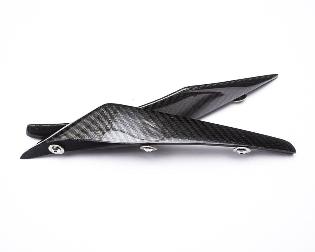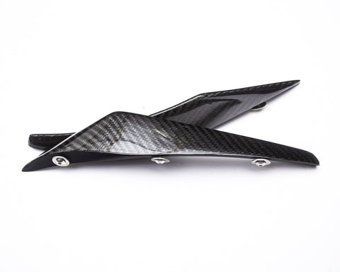 The aerodynamic add-on are finished in a high gloss, UV protected clear coat. Designed specifically for the SRT Viper front bumper, the 2x2 carbon weave looks amazing as a simple upgrade. The price includes only the 2 canards. The other carbon fiber front bumper guards that fit around the opening upside down are sold separately.