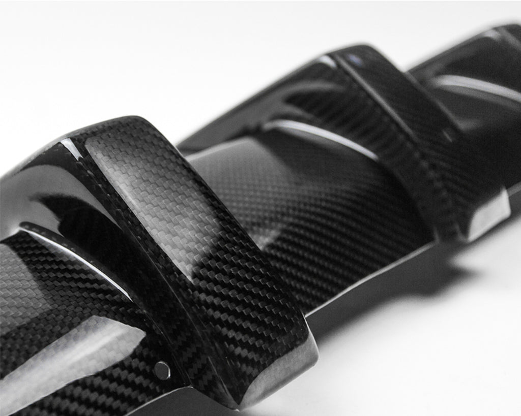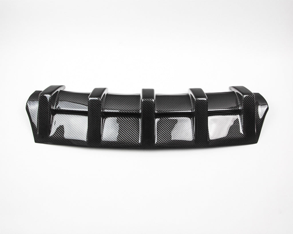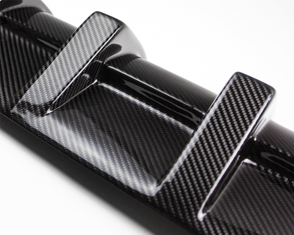 VR Aero now has this stylish carbon fiber rear diffuser available for the Porsche 991 Turbo. The rear diffuser is an add-on piece that attaches to the OEM rear bumper. Designed to follow the lines of the rear skirt, the carbon fiber portion helps pronounce the rear end of the 991. It is finished in a 2x2 carbon weave with a high gloss clear coat. The diffuser easy attaches with high strength double sided tape.