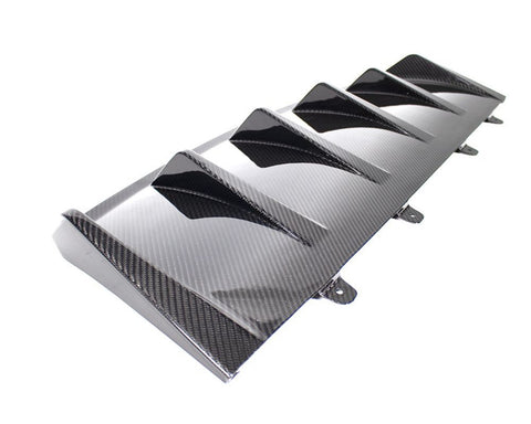 The Porsche Taycan rear end styling really shows off its performance capability. As an automotive first for Porsche, the electric vehicle has Porsche performance exuding from its soul. Enhancing the electric vehicle is limited but it can certainly be done in the styling department. Vivid Racing's VR Aero brand has created one of the most amazing looking aero kits for the Porsche Taycan. Part of the aero kit components is this rear diffuser. The diffuser is designed to flow with the body lines while giving that extra aggressiveness to the rear end. The diffuser is full carbon fiber, manufactured from pre-preg material. Pre-preg has that glossy finish but does not require layers of clear coat to be applied after vacuum bagging. With this process, the quality and finish is simply the best! The diffuser attaches to the under body using both strong double sided adhesive tape as well as mounting to the factory bolt locations. If you are wanting to dress your Porsche Taycan up, these carbon fiber aero parts from Vivid Racing are the answer.