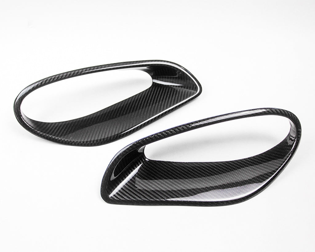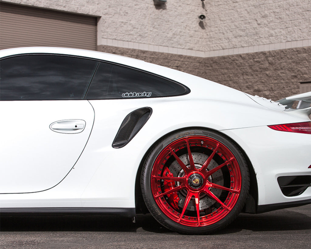 VR Aero now has these stylish carbon fiber side air ducts that fit over the Porsche 991 turbo stock pieces. The side air ducts are finished in a 2x2 carbon weave with a high gloss clear coat. Carbon fiber has always been a stylish addition to any vehicle.