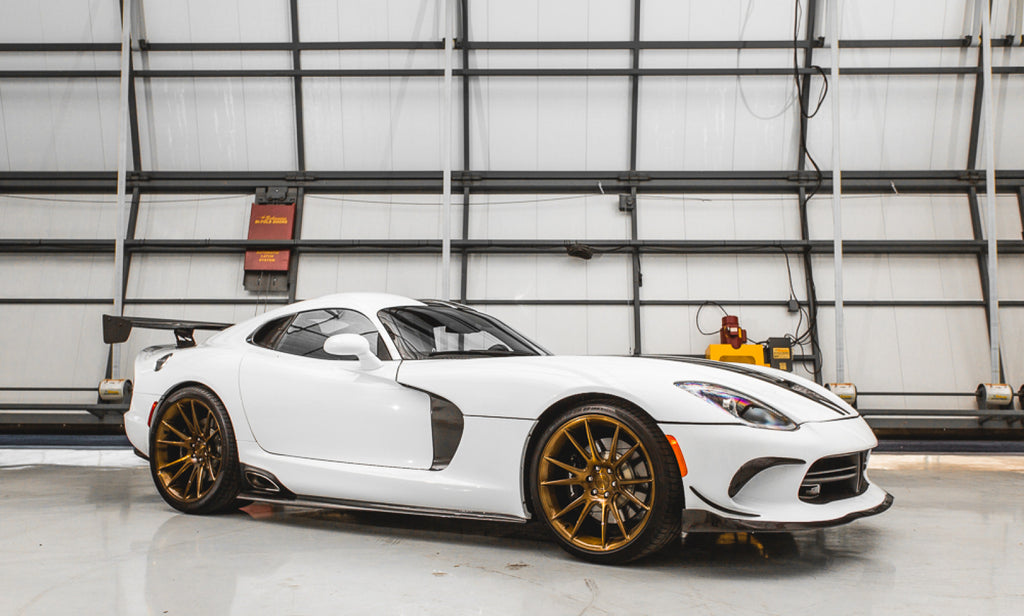 All carbon fiber parts are 2x2 weave featuring a glossy UV clear coat. All parts fit with existing OEM hardware or include hardware where required. This complete package can only be had from the Vivid Racing team for those wanting to lighten up and style up their SRT Viper.
