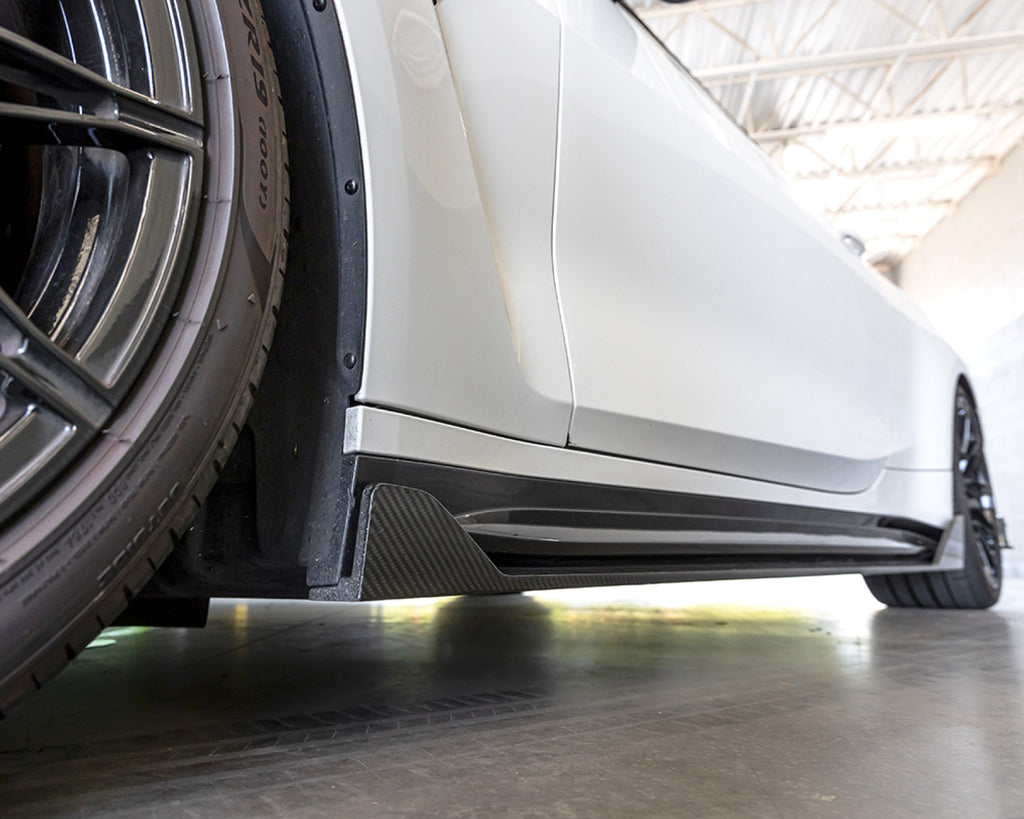 The new BMW M4 G82 chassis features aggressive style on all sides for performance, aerodynamics, and engineering all in one. The VR Aero carbon fiber side skirts flow immaculately with the OEM side rocker panels and really bring the other VR Aero carbon fiber parts together. Featuring flared up ends that flow into the wheel wells, these carbon fiber sides skirts for the BMW M4 are a must have.