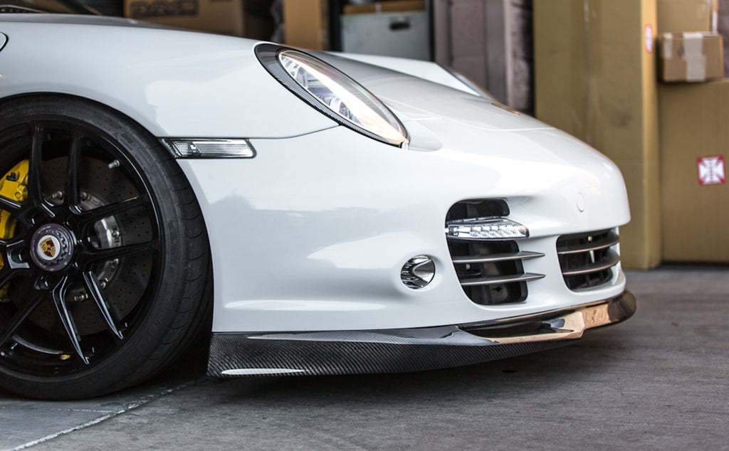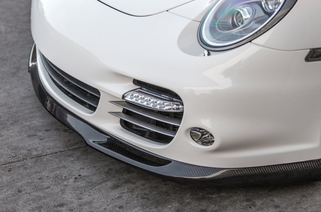 VR Aero now offers this Type II carbon fiber front lip to compliment its other carbon fiber aero products for the Porsche 997 Turbo and Turbo S from 2007-2012. The front spoiler is made from 2x2 carbon weave and features a high gloss clear coat finish. The lip spoiler is very lightweight and durable as it fits in replace of the factory black plastic lip spoiler. Its slightly more aggressive look gives the front bumper that extra edginess the 997 Turbo deserves while enhancing aerodynamics. Its finished surface allows you to paint it or leave it as carbon fiber. This front lip spoiler can be used with the stock aero components or used inconjunction with our other carbon fiber parts available.