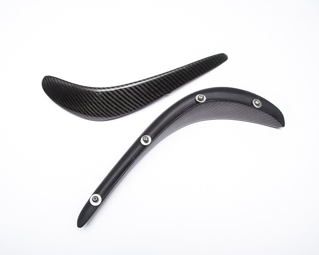 The aerodynamic add-on are finished in a high gloss, UV protected clear coat. Designed specifically for the SRT Viper front bumper, the 2x2 carbon weave looks amazing as a simple upgrade. The price includes only the 2 canards. The other carbon fiber front lower bumper guards are sold separately.