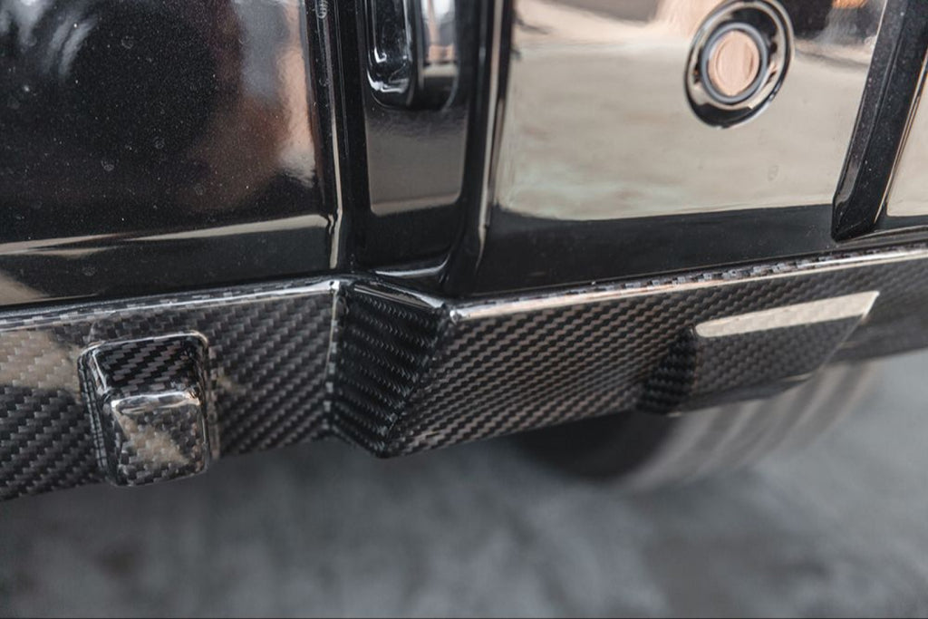 Each part is designed to bolt in to factory mounting locations while using high strength double sided tape in certain areas. The flow from the stock rear bumper to the VR Aero diffuser is seamless once mounted. Now with Vivid Racing's carbon fiber rear diffuser, your G63 has a more aggressive rear end. Each carbon fiber diffuser is coated with a glossy clear coat to give incredible shine and protect the pre-preg fibers from harmful UV rays.
