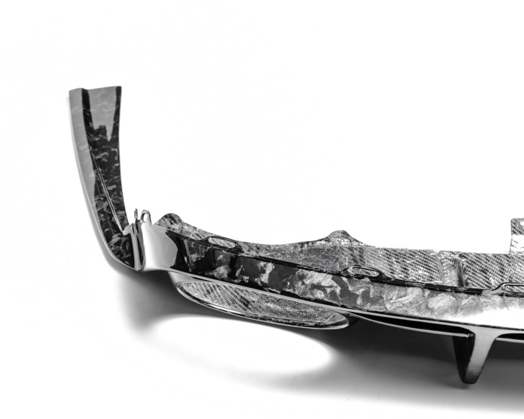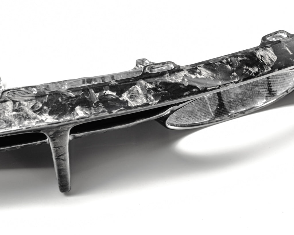 The VR Aero forged carbon fiber rear diffuser for the Audi RS7 C7.5 is something that will really set you apart from other modded Audi RS7 owners. Forged carbon fiber has become an incredible look that people want to emmulate on their vehicle. Unlike standard twill carbon fiber, forged carbon is actually made up tiny chopped carbon fibers that do not have a distinct pattern. It tends to have a marble look to it instead of the directional pattern of standard twill carbon. This look because popular because of OEM parts on the Lamborghini Performante.