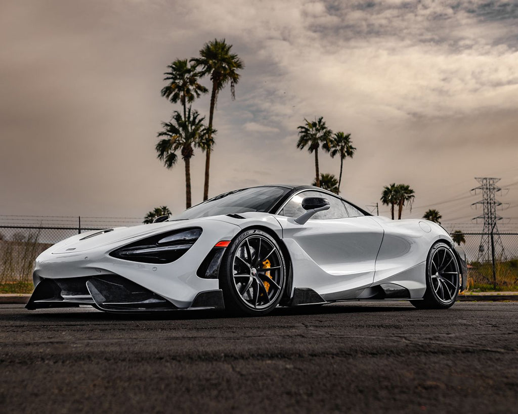 The McLaren 720s is already a high performance supercar. But with the popularity of the 720s amongst enthusiasts, what truly sets your car apart from others? Now you can really have the most amazing McLaren 720s out there with the VR Aero Forged Carbon Complete Body Kit. This is a complete transformation of your 720s that far exceeds even the sexiness of the 765lt. The forged carbon fiber throughout gives a much more exotic look than standard twill carbon fiber weave. The kit includes everything from front to back that you need to upgrade for this look. This even includes the center exit quad tip muffler to work with OEM downpipes or aftermarket race pipes. Because this is a complete body kit, professional paint and installation is absolutely required.