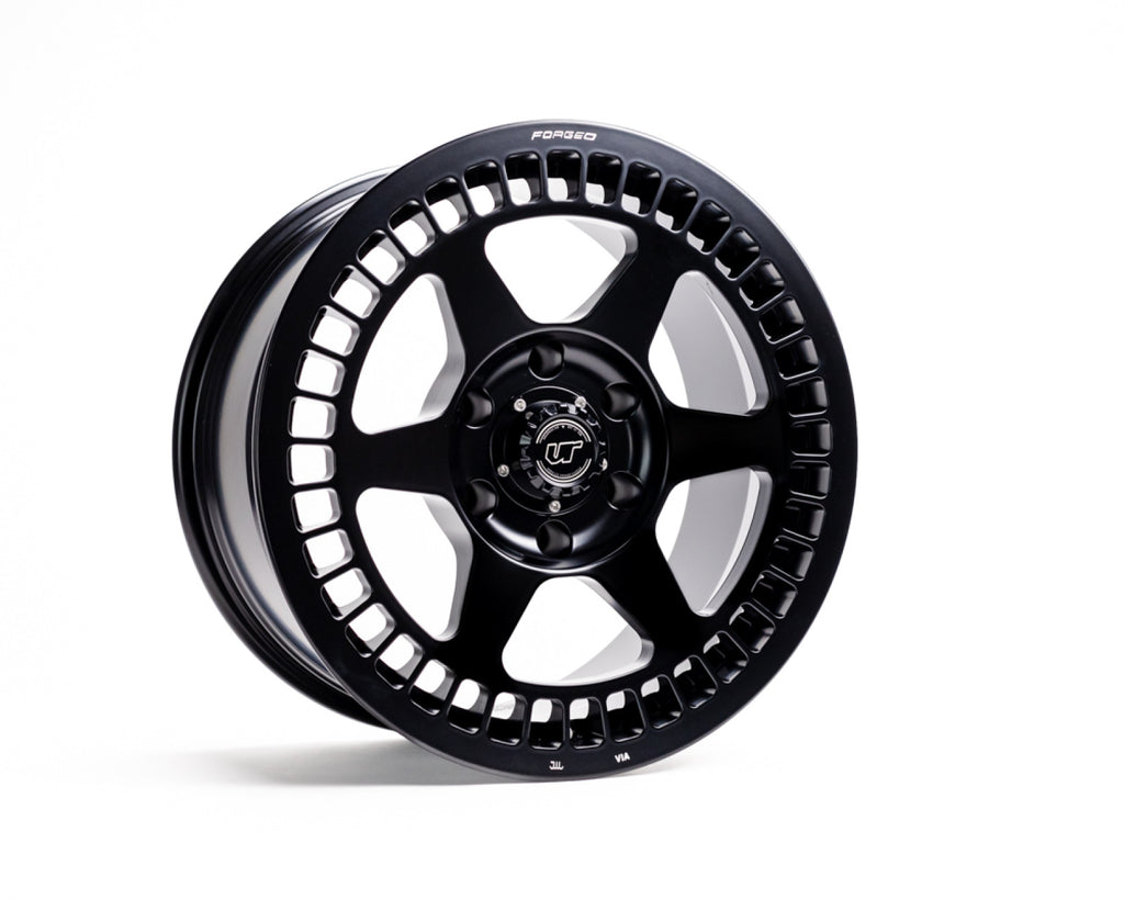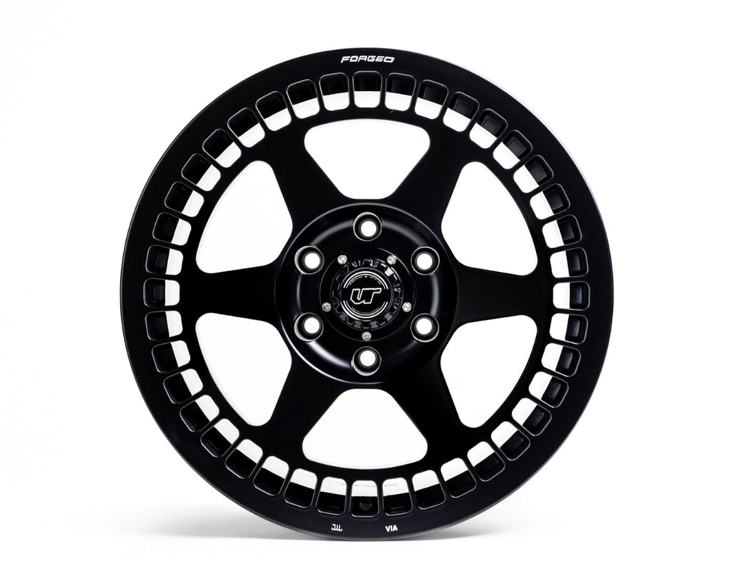 The VR Forged D07 is a full 1pc forged monoblock truck wheel. The design of this wheel is very rugged with an entire CNC machined ring surrounding the stout 6 spokes. Manufactured using a 10,000 ton press, these wheels are incredibly strong. This wheel is perfectly matched to any offroad vehicle. Features a knurled bead area for added grip when running low tire pressures.