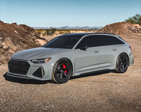 The VR Forged D12-R is a full 1pc forged monoblock wheel. The design of this wheel is a play on our D12 with the very Euro style ring around the outside edge. The look of this wheel is very nostalgic to the early 2000s Audi touring cars. Manufactured using a 10,000 ton press, these wheels are incredibly strong. This wheel is perfectly matched in styling to the Audi RS6 Avant or Audi RS7 C8 Chassis.
