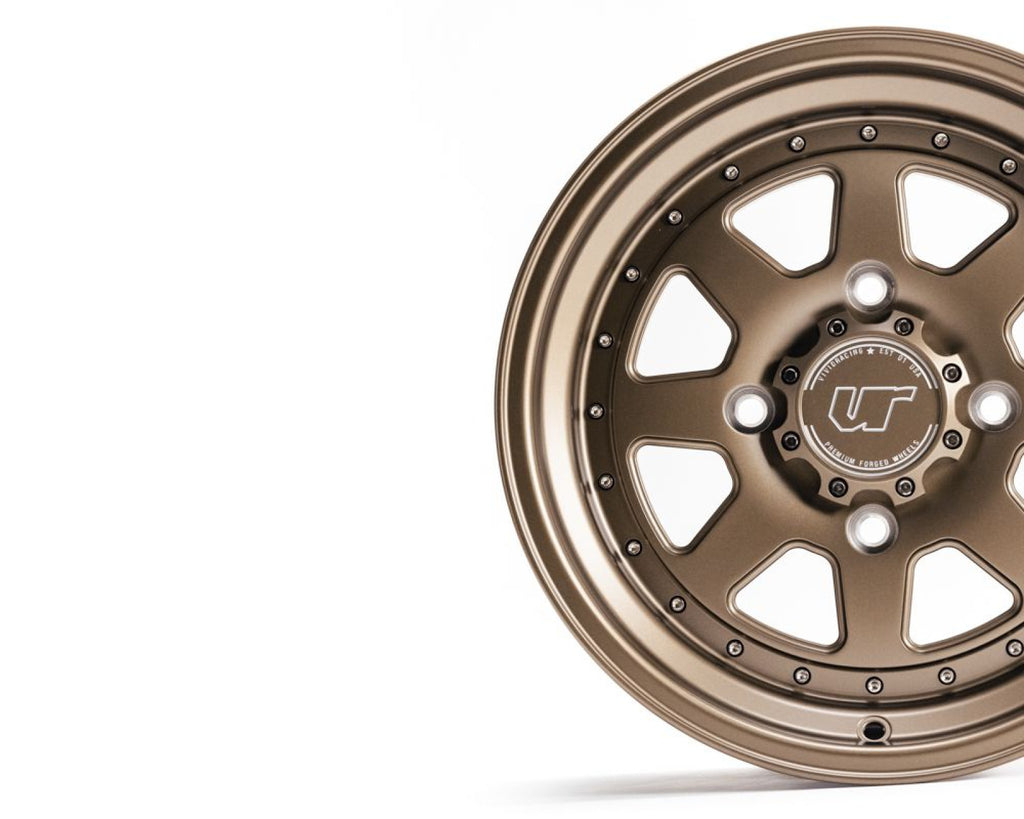 The VR Forged D15 UTV wheel is a full 1 piece forged monoblock wheel that is in a box ready and tackle the terrain ahead. You dont have to wait for these to be made like other forged wheels. Just pick your favorite tire and mount it up! This UTV specific wheel was designed to be superior in strength and much lighter than standard cast wheels. Creating this wheel was necessary for those wanting a wheel that will not fail under the harshest conditions as well as look amazing for the everyday UTV owner. The 8 spoke design is a perfect look for UTVs and shows off just enough of the brake caliper. Speaking of brakes, when we designed these it was an absolute must for these wheels to work with popular big brake kits like the Agency Power upgrade. Manufactured using a 10,000 ton press, each forged wheel is manufactured to meet the expectations of the highest OEM automobile manufactures.