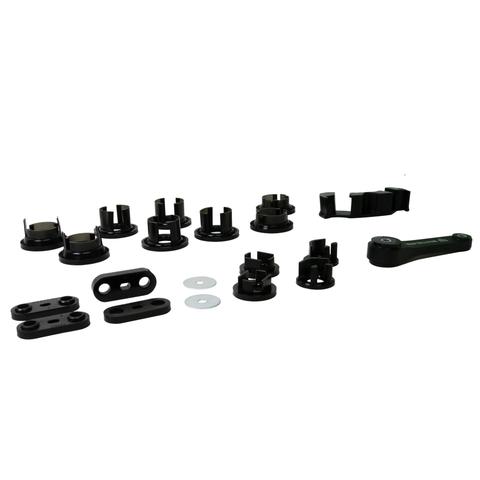 On this page, you are looking at the Whiteline Front and Rear Essential Driveline Kit. This kit contains all of the essential bushings and inserts to reinforce your driveline to help reduce movement under hard acceleration or hard braking.