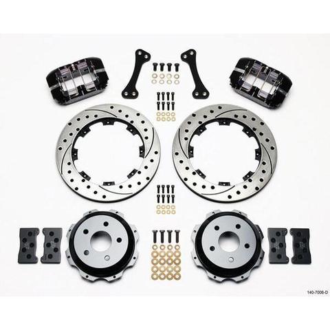 Forged billet DynaPro four piston calipers and high performance BP-10 compound pads generate high clamping power with firm pedal response for this group of specialized rear axle brake kits. These kits retain full function of the OE parking brake and provide complimentary performance and style with front big brake upgrades. Caliper piston sizes are selected to provide balanced rear bias ratios using the output from the OE master cylinder. Rear rotor and hat combinations are engineered specific to each vehicle to provide brake performance upgrades and precise fit with the mounting of the DynaPro calipers.
