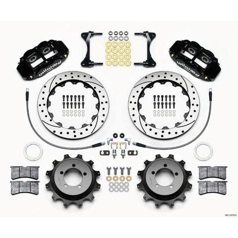 Forged Narrow Superlite 4R four piston calipers are combined with BP-10 compound pads and 12.88” rotors in this group of big brake kits for custom high performance street and show machines. This group of specialized kits for Import Cars retain full use of the OE parking brake, master cylinder output, and ABS where used. FNSL4R rear kits provide complimentary style and performance with 13” and larger front brake upgrades in conjunction with wheel, tire, and suspension upgrades. Optional caliper finishes and rotor designs enable the builder to match style and performance on all applications.